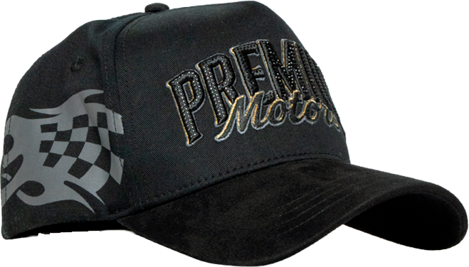 Domina las calles con la pieza clave de nuestra colección. Una gorra en negro absoluto que destaca por su imponente bordado frontal en relieve y gráficos laterales de banderas a cuadros. Con una visera de textura premium y estructura rígida de alta calidad, ofrece un ajuste perfecto y duradero. El equilibrio ideal entre la herencia del automovilismo y el lujo urbano.